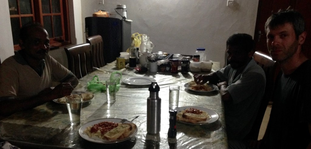 In an attempt to share our culture, Logan and I decided to make a pasta dinner for Someratne and Tillekaratne (Fig. 10). To appeal to their taste, we went for an arrabiata-like sauce, adding a good number of little chilis. We had some Italian seasonings that my sister had brought us when she visited and added lots of garlic and onions. We also made garlic bread. It was delicious! They seemed to think so too… at least that’s what they led us to believe 🙂