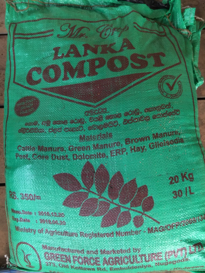 The CRISL is not happy with just any soil – they recommend mixing topsoil with 10 kg of cattle or goat manure, 1 kg of dolomite and 1 kg of young palm mixture (2 parts urea, 3 parts saphos phosphate, 2 parts muriate of potash (Fig. 2a)). Thankfully, things in Sri Lanka are comparatively cheap. I purchased 10 bags of “compost”, each sack weighing 20 kg, for a grand total of $23. In this case “compost”, is composted cattle and goat manure mixed with dolomite. All that was missing was the young palm mixture, and I purchased a 20kg sack of a similar product for $10. After the truck dropped the supplies at the base of the foot bridge leading to the research station, we threw the sacks on our shoulders and carried them 200 yards to the house. Following that, we hauled the compost to the planting site, in addition to an equally large sack of topsoil taken from near the forest edge (this is to supplement the poor soils on the kekila fern slopes). At which point we mixed the soil, compost and fertilizer.