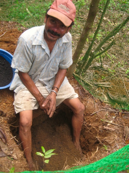 The 17 banana trees we are planting (in addition to the 6 we already have) will include 9 varieties. There are many more varieties throughout the country. Some closely resemble the Cavendish cultivars commonly found in North American grocery stores. Others are much sweeter or have a better texture. One starchy variety that I don’t much care for,“allu kesel,” is served as a curry. The prize, fetching a premium in local markets, is “ambul kesel.” Somie brought us our first from Kuduwa last week. We’ve even heard of a variety that is several feet long! With luck, next year’s fellows will be blessed with a steady supply of tasty ones from our homegarden.