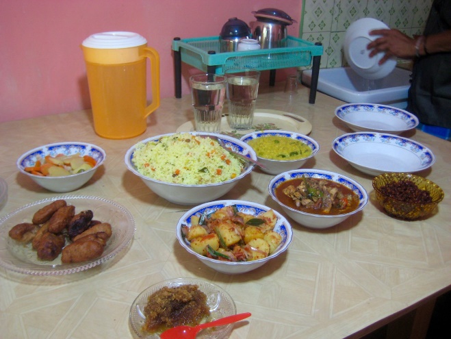 This was all intermingled with visiting relatives and eating lots of sweets and food… sounds familiar, right? We ate lunch on New Year’s Day, April 14th, at Tillekaratne’s, preceded by an abundance of tea and sweets (Fig. 3). We later made our way down to Someratne’s for a virtually identical dinner, of course preceded by tea and sweets, but this time with a little betel nut chewing as well (see Blog 7 – chewing betel). The following day, we had kiribath for breakfast at Tillekaratne’s house (with you guessed it, more tea and sweets), on our way down to visit Someratne’s wife’s family’s house. There, we had even more tea and sweets before we were anointed with oil and ate a big lunch. Whew! The eating really wore us out. We were exhausted.