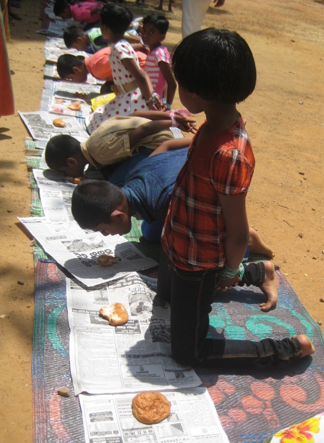 Games were the main attraction, filling the entire day from morning till dark (See the photograph montage at the end). They included races for all ages, a greasy bamboo pole climb, a frighteningly intense pillow-fight competition, a piñata type game that had milk in one of three ceramic hanging bowls, a bread eating contest, balloon blowing contests, threading a needle relay, draw the eye on the elephant (like pin the tail on the donkey), balancing a coin while standing on one leg, egg toss, guess the number of seeds in a papaya/pumpkin, walk the bamboo plank to retrieve a flag, hot potato, three-legged race, and the obligatory tug of war contests.