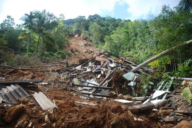 In the days that followed the disaster, we found that locally all roads to our village were blocked with landslides. This was particularly unfortunate for us because the morning after the storm, Professor Mark Ashton from Yale University had arrived in Sri Lanka to survey our project firsthand. Although his driver tried several routes, they were unable to arrive and the roads were not reopened until after he was scheduled to depart the country.