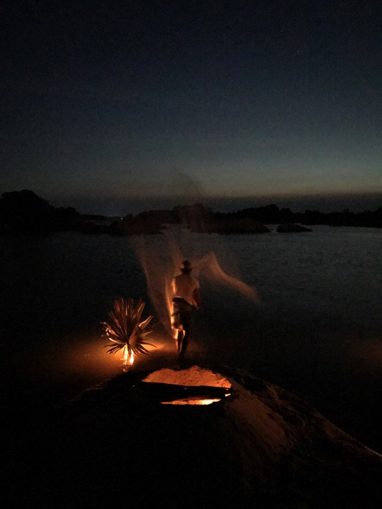 There is something pulling about the dry season, the lack of rain, this waiting for the humidity to fall. We’re hanging. Luke and I went to Arugam Bay on the east coast, where everyone spoke Tamil, not Sinhala. At night, the seafront lagoon was ringed by fire. The locals hung small kerosene lamps on partially submerged sticks and threw weighted nets out into their light. A twist opened the nets’ hems out in neat, wide circles (Fig. 3). The men reeled them in slowly, pulling and twisting the cord. They gathered the bottom and shook it over a sand mound containing a tiny bottle with a wick and flame and covered by palm fronds. Prawns, a few each throw, remained within the circle of light. Mohammed, who runs a seafront shack and showed us his brother-in-law casting, said that when the tsunami came ten years ago, he and his family lived by climbing a palm tree. Twenty people rode out the wave in that tree.