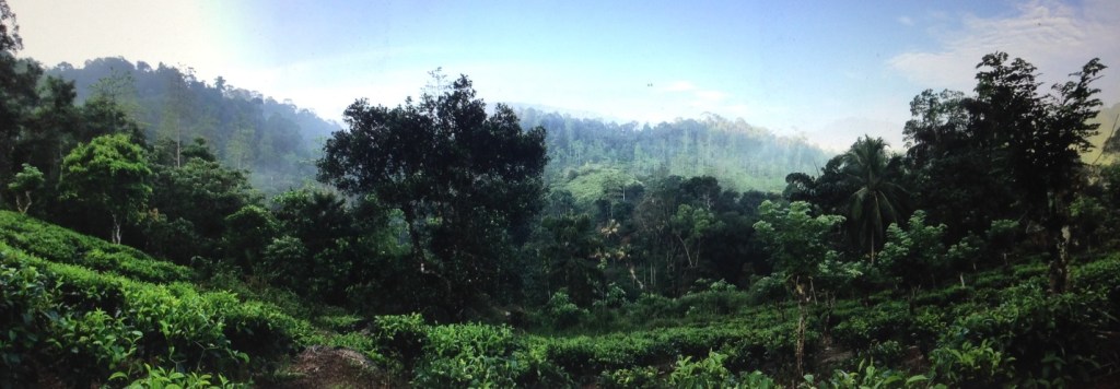 In the canopy men tap kitul and cut breadfruit, and in the understory someone walks across a jungle ridge, someone taps rubber, and, far from a home or tea garden, someone answers a phone. Butterflies, ashy and butter-colored, black and phosphorescent blue, flicker like leaves falling sideways and up. Monkeys walk through the forest top, bending trees into each other. From the tea slopes you can hear much of Pitakele valley. A family sifts coffee beans below. Premewati picks dalu (Fig. 2). Boys play in Neshanti’s yard, facing off with sticks. Someone is playing music in Tilleka’s house, in Ajit’s house, in Muturanga’s house, in Rohini’s house, in Romanis’ house. Someone is hammering, someone is sweeping, a baby is crying.
