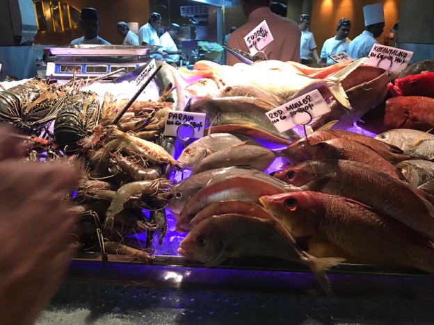 Driving south to Galle, a shipping port and fortified city held first by the Portuguese, then the Dutch, and then the British, we passed big plantations of oil palm – which I hadn’t previously realized is being grown in Sri Lanka. At Hikkuduwa, a beach famous for its coral reef (now dying), my parents took endless photographs of the ‘stick fishermen’ who sit high on sticks in the rocky shore, fishing for mullet, snapper, barracuda. We walked around the old fort admiring the stupa, mosque, and two churches within it – half of the population in the fort is Muslim, many descended from Muslim traders. We looked at the inscriptions on the graves from the 1600s-1800s in the Dutch Reformed Church, its wooden, blue-planked ceiling resembling the hull of a ship; we couldn’t find Professor Ashton’s ancestor, but we tried! Driving east to Mirissa, we saw huge blue whales on a whale watching trip (Fig. 4).