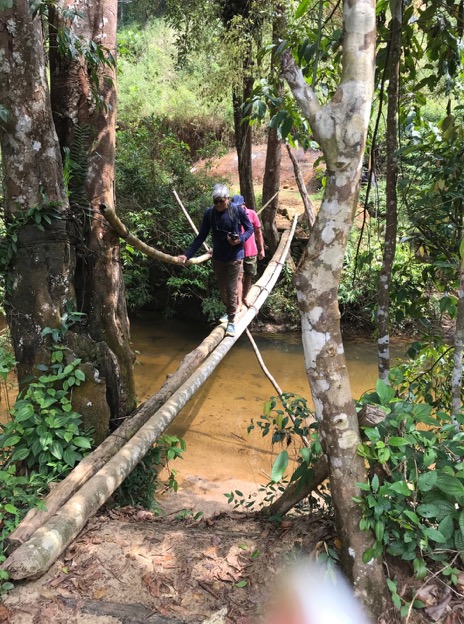 My days at the field station have passed quickly, taken up by visits to Pitekele’s households. Each morning I walk along the village’s main road, hearing the rustling of the huge water monitor in the tea plantation across the footbridge and listening to the purple faced leaf monkeys twitter as I pass. I stop in at people’s houses to say a quick hello and am often given tea and a snack for the way – curd and kithul syrup, rice cooked in coconut milk and stuffed with sweet kithul jaggery, fried wafers covered in grains of sugar, sticky pudding wrapped in a kenda leaf. People gift me fruits from their gardens – a soursop the size of my head, bunches of bananas, green papayas to ripen, tannic weralu (which looks like olives), and once a 2-kilo bag of a fruit called ambarella, which turns into a delicious sweet-and-sour dish when curried. In greeting, villagers don’t ask how you are but where you’re going, and I’ll tell people my itinerary for the day – across the river to Esselin’s house, or up the hill towards Sinharaja to Rupasingha’s place. During the interviews and home garden visits, memorable moments emerge – spotting a Sri Lankan grey hornbill in an orange tree, hearing Somewhere Over the Rainbow in a television ad, doing the washing in the river in the evening with the women of the household (Fig. 1). My Sinhala is now strong enough that I can converse in a grammatically-incorrect fashion; I am thankful that in addition to Pali, Sinhala has Sanskrit threads I can catch at in a bind.
