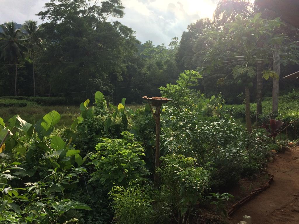 For those who have followed the blogs from past years, you know that Pitakele residents are not subsistence farmers who dedicate great amounts of energy to cultivating fruits and vegetables. Most residents put their time and focus into a single cash crop – tea. You can tell when someone is on their way to their tea garden, or even heading out to tap sap to make sugar from kithul palms (Caryota urens) – they wear attire appropriate for the task. They carry specialized knives and indispensable tools. They have specified times in the day when the work must be done, and a mind for that alone. When folks tend tea, it looks like routine and it looks like work. When they tend the home garden, it looks second nature–like drinking a glass of water while reading! This is an undeniably important task performed without any time having been set aside for it. I find it interesting to imagine how this tangential care of the garden plays out on a larger scale.
