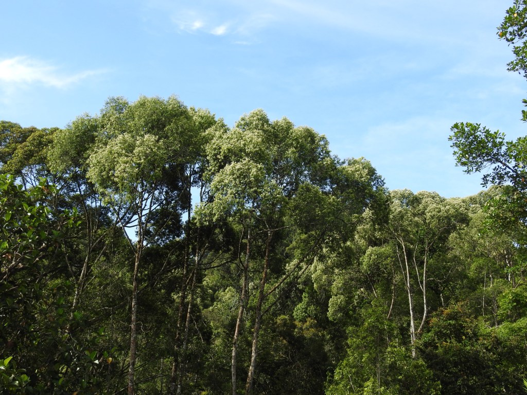 Trees must make the most of the brief six hours when flowers are open. They achieve this using strong visual cues, drawing in pollinators from across the landscape and then directing them towards white flowers against a green background. In addition, flowers emanate a mild aroma that accumulate in numbers and sweeps through the forest.